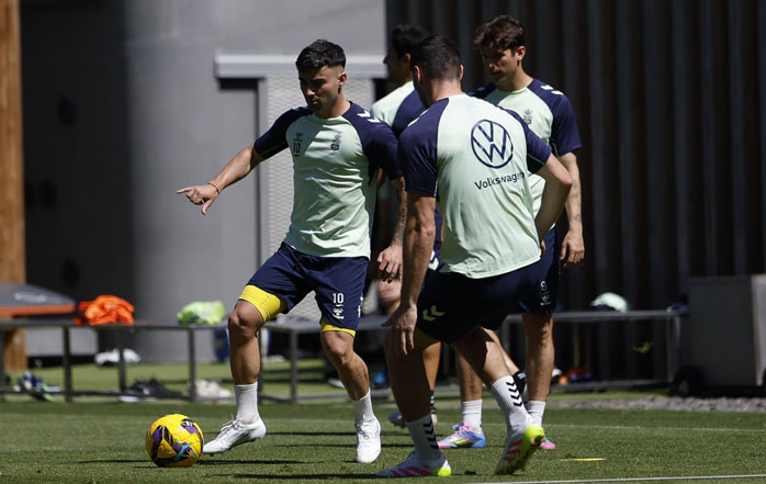 El técnico del conjunto canario, Diego Martínez, ha dirigido una sesión en la que Alberto Moleiro, que sufrió unas molestias en el aductor durante el último partido con la Sub-21, se ha ejercitado con normalidad. Al margen del grupo siguen los lesionados Andy Pelmard y Benito Ramírez, quienes continúan con su proceso de recuperación.