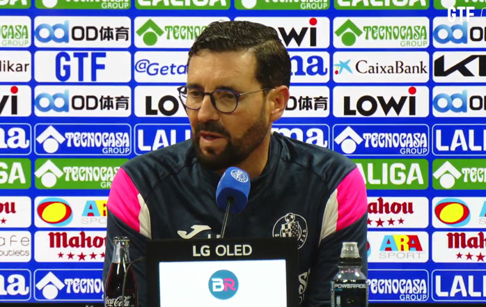 "Bueno, en primer lugar, nosotros tenemos que pensar en el próximo partido, en el que bastante tenemos. Todavía no hemos conseguido el objetivo de la permanencia, no podemos pensar en un objetivo diferente. Sería un error por nuestra parte pensar en algo en el futuro cuando no hemos conseguido nada en el presente. Y lo comentaba anteriormente: el fútbol es muy cambiante. Te puedo poner un ejemplo: Osasuna, en la primera vuelta, llegó a sacarnos, creo, 14 puntos. Todo el mundo pensaba que Osasuna iba a jugar competición europea y que iba a ser una temporada increíble. Fijaos lo que ha cambiado, y ahora mismo está por detrás de nosotros. No podemos pensar en el fútbol así, y menos nosotros. No hay que olvidar que el Getafe es un club humilde, que esta temporada salieron 13 o 14 futbolistas, que se han incorporado jugadores de categorías muy inferiores, sin experiencia en el fútbol profesional. Todo tiene un periodo, y en tiempo récord hemos sido capaces de adaptar a muchos de ellos. Todavía hay mucho trabajo por hacer, entonces sería un grave error por nuestra parte, y una temeridad, pensar en algo que no se corresponde con la realidad. Hay clubes que han hecho inversiones muy importantes, que tienen plantillas muy superiores a la nuestra y que están teniendo dificultades para estar entre los mejores".