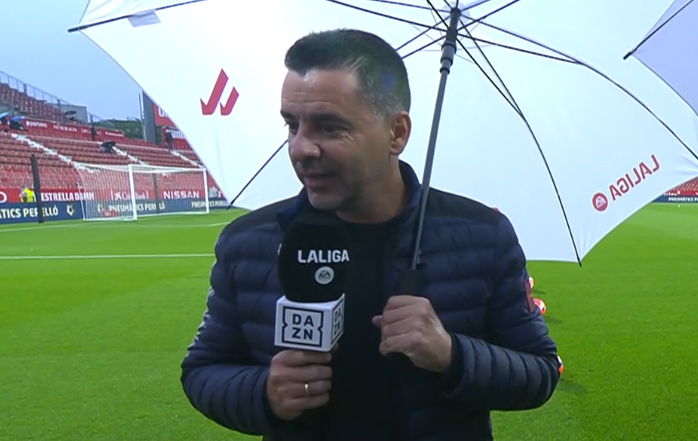 El entrenador del Girona FC, Míchel Sánchez, atendió a los micrófonos de DAZN este lunes por la noche en Montilivi, a pie de campo, minutos antes del comienzo del partido contra el RCD Mallorca, correspondiente a la jornada 34 del campeonato de Liga.