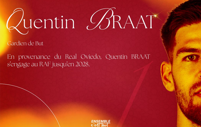 El Rodez AF ha anunciado la incorporación del guardameta Quentin Braat, procedente del Real Oviedo, con un contrato hasta junio de 2028. El portero francés, nacido en Fontainebleau en 1997 y con una altura de 1,94 metros, cuenta con una sólida trayectoria en la Ligue 2 y en el fútbol español.