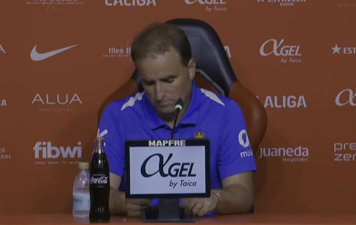 "Muriqi está fastidiado por esa acción y por la ocasión que ha tenido también, que era el 1-1. Y bueno, con respecto a conectar con la afición, creo que lo hemos conseguido. No lo queríamos así, con nueve jugadores y teniendo que hacer un suave esfuerzo en el segundo tiempo. Pero mi sensación es que la afición hoy se ha ido orgullosa del equipo. Que se ha sentido identificado. Y quiero pensar que se han ido con ganas de volver el sábado que viene. Que, por cierto, hoy había delegados de la Liga desde las cuatro de la tarde. Creo que se habrán dado cuenta que a las cinco de la semana que viene no se puede jugar. Pero bueno, esperaremos a ver lo que pasa. Pero creo que la afición se ha ido hoy orgullosa del equipo, aunque triste por el resultado. Creo que volverán el sábado que viene."