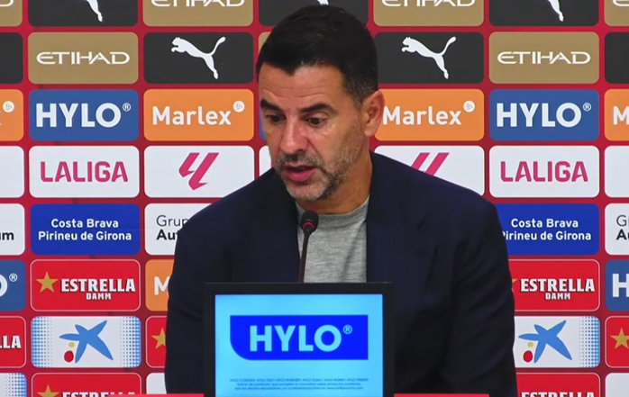 "No sé si son nervios. Evidentemente, después de dos partidos donde la imagen es muy mala, donde estábamos fuera del partido en el minuto veintialgo, veníamos del Rayo también una primera parte para olvidar y con un jugador menos. Donde no has competido en dos partidos te cuesta alguna situación. Es normal la confianza. Lo dije ayer en la previa, que quería competir y que la confianza iba a entrar en el equipo y en cada jugador. Necesitábamos la ayuda del de al lado, la comunicación, sentirnos con energía para poder ir cada vez más al partido. Los primeros dos minutos del partido se ha visto un Girona temeroso, pero según transcurría el juego hasta el gol de ellos, se ha visto un Girona de menos a más. Para mí son los brotes verdes de los que estás hablando. Confío mucho en los jugadores, confío mucho en las personas y si un jugador está para dar todo, vamos a trabajar con él para solucionar este mal arranque de competición. Puede ser que haya jugadores un poco más nerviosos atrás, si lo dices por el portero también. Evidentemente, después de ser señalado, no está con la flecha para arriba. Vamos a dejar respirar a la gente, a dejar que vayan asumiendo la responsabilidad. Quiero jugadores que crean que competir en Primera con el Girona es un lujo, no que crean que jugar Champions es la hostia. Compites en Primera con el Girona para quedarte en Primera y tienes que venir con hambre. Ese hambre lo tiene el Levante, lo tiene el Rayo, lo tiene el Alavés. El Madrid tiene hambre para otras cosas, pero tú tienes que tener hambre para sobrevivir en Primera. Y eso creo que está en el debe nuestro desde hace una temporada y media."