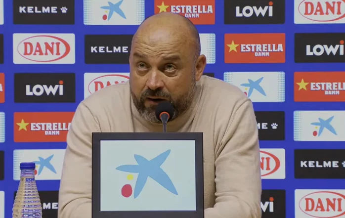 "El pero, quizás, es que a veces pienso que nos falta un poco de... no sé si la palabra es veteranía o cómo se diría, ese tópico que siempre se dice y que a mí no me gusta mucho, pero sí que nos falta un poco en algunas situaciones de la segunda parte, como la que chuta Roberto, situaciones de parar el partido un poco. Es lo que le he dicho a De Burgos cuando ha acabado el encuentro: provoca situaciones. Somos el equipo más primo de la Liga, no sabemos tirarnos, no sabemos parar el partido. Somos un equipo ofensivo, que juega a tumba abierta, y eso genera muchos desajustes y muchas situaciones, pero pienso que el equipo cree, que es lo más importante al final. Puedes jugar de muchas maneras al fútbol, pero el equipo cree, y eso es lo que marca, ya lo he dicho, el hambre que tienen los jugadores. Al final, se puede poner quien quieras, Guardiola o quien sea, pero si ellos no van, el resto da igual. El techo que quiero ahora mismo es llegar a los 42 puntos lo antes posible. A partir de ahí, siempre digo lo mismo, siempre lo he dicho en los equipos donde he estado: los objetivos te los marca la temporada, no el nombre. Aquí podemos decir lo que queramos, el objetivo era la luna, pero la realidad te la marca la competición. A medida que consigamos metas y objetivos, se podrán mirar otras cosas, porque no puedes mirar más allá sin haber subido el primer peldaño. Hay que llegar al primero y, a partir de ahí, apretar más, y, sobre todo, no creernos lo que no somos. Si nos equivocamos en eso, sí que iremos al riesgo."