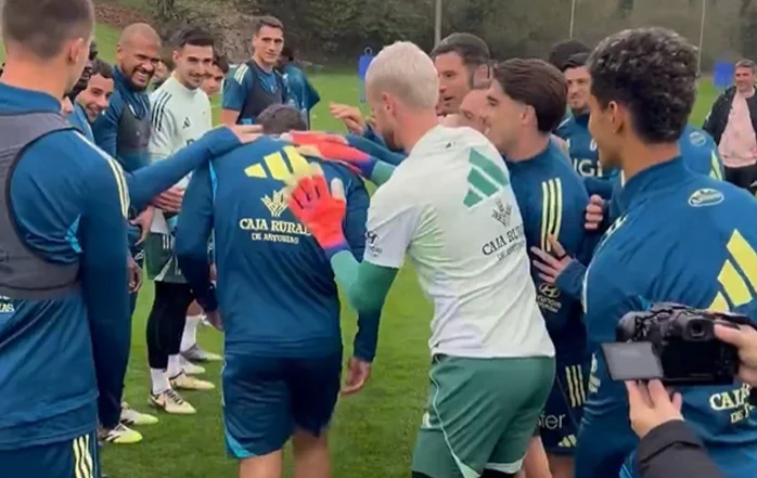 El técnico del conjunto carbayón, Luis Carrión, ha dirigido una sesión en la que la gran noticia ha sido ver por primera vez entrenar parcialmente con el grupo a Álvaro Lemos, de baja desde marzo por una rotura del ligamento cruzado anterior, aunque sin ficha para poder participar hasta enero. Cazorla continúa en dinámica grupal, mientras que Ovie Ejaria y Josip Brekalo se han ido incorporando progresivamente a lo largo del día. En el capítulo de ausencias, Alhassane, Sibo, Viñas, Carmo e Ilic siguen concentrados con sus respectivas selecciones, por lo que se reincorporarán a lo largo de la semana.