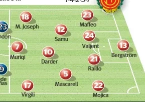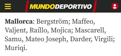El once titular queda prácticamente definido tras el partido de Copa. Llegan descansados todos los integrantes del once titular: Bergrström, Maffeo, Mojica, Raíllo, Valjent, Mascarell, Samu, Mateo Joseph, Darder, Virgili y Muriqi. No obstante, Arrasate podría guardarse algún as en la manga con jugadores del perfil Morlanes, Asano o Pablo Torre.