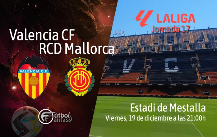 Mestalla levantará el telón de la jornada 17 con un duelo clave para la zona media-baja de la clasificación. Valencia y Mallorca se enfrentarán este viernes 19 de diciembre de 2025, a partir de las 21:00 horas, en un encuentro en el que ambos equipos buscarán cerrar la semana con sensaciones positivas. El conjunto valencianista, dirigido por Carlos Corberán, ocupa la 17ª posición y llega tras sumar tres empates, una victoria y una derrota en sus últimos cinco compromisos, además de pasar de ronda en Copa del Rey. Por su parte, el Mallorca de Jagoba Arrasate se sitúa en el 14º puesto, con un balance reciente de dos victorias, dos empates y una derrota y la mala sensación de la eliminación copera esta semana. Ambos equipos buscarán seguir escalando posiciones y alejarse de las zonas bajas de la tabla.