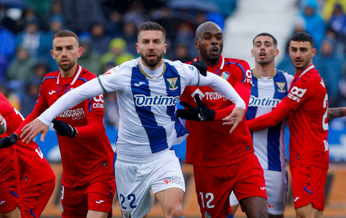 Diego Rico roba un balón a un jugador contrario pero no recupera el balón.