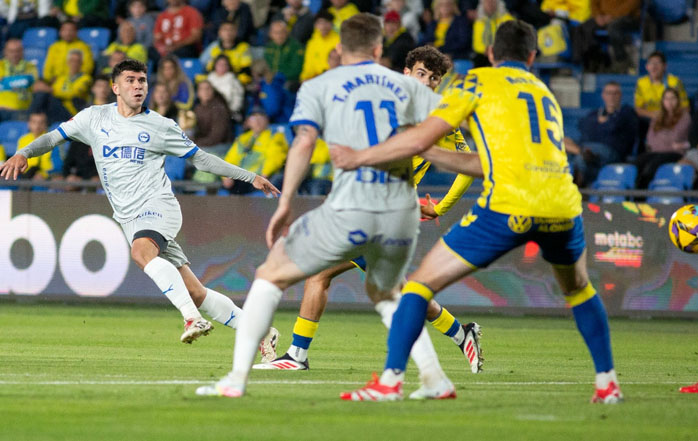 Abdel Abqar roba un balón a un jugador contrario pero no recupera el balón.