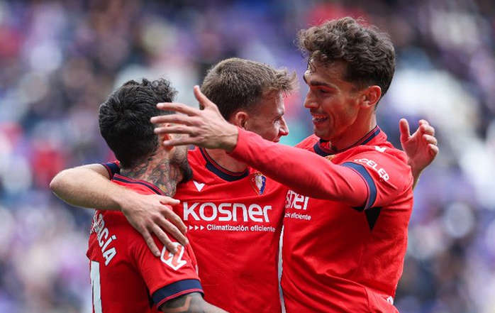 Aimar Oroz roba un balón a un jugador contrario pero no recupera el balón.