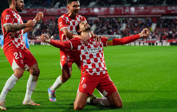 Viktor Tsygankov roba un balón a un jugador contrario pero no recupera el balón.