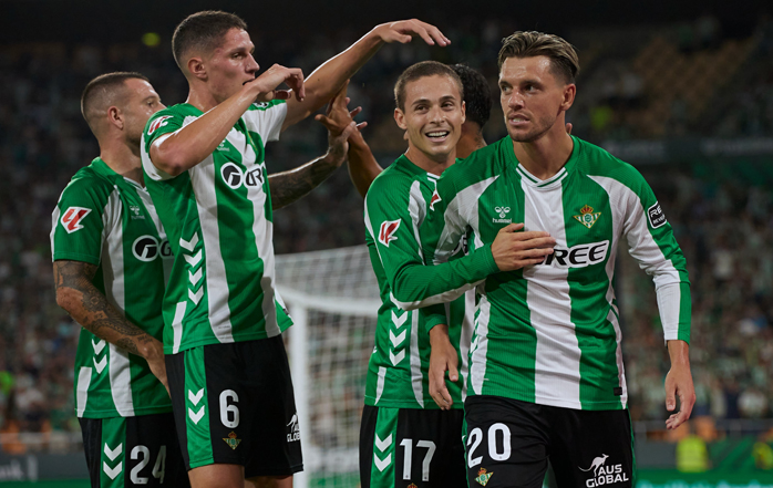 Pablo Fornals roba un balón a un jugador contrario.