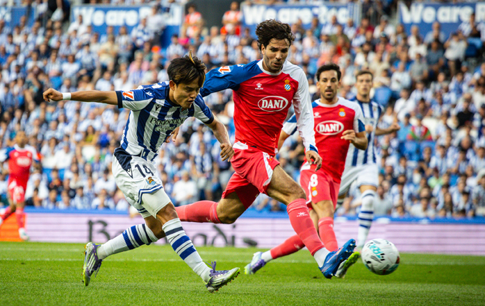 Centro preciso de Takefusa Kubo que encuentra un compañero.