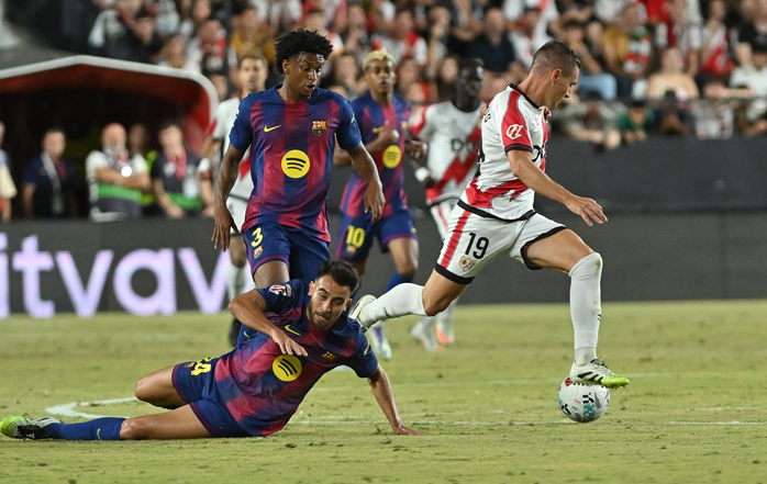 Pathé Ciss roba un balón a un jugador contrario pero no recupera el balón.