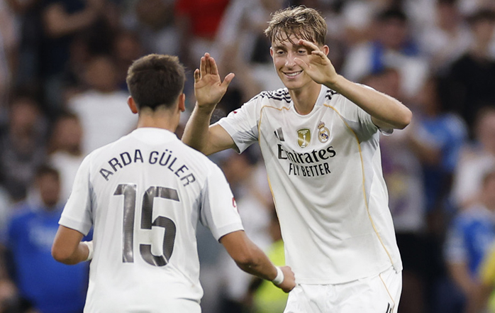 Dani Ceballos roba un balón a un jugador contrario pero no recupera el balón.