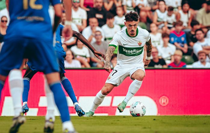 David Carmo roba un balón a un jugador contrario pero no recupera el balón.
