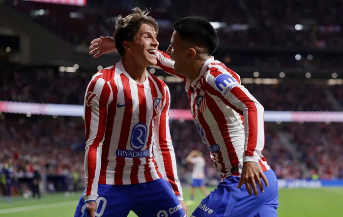 Pablo Barrios roba un balón a un jugador contrario pero no recupera el balón.
