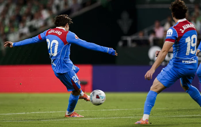 José María Giménez roba un balón a un jugador contrario pero no recupera el balón.