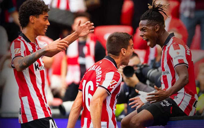 Mikel Vesga roba un balón a un jugador contrario pero no recupera el balón.
