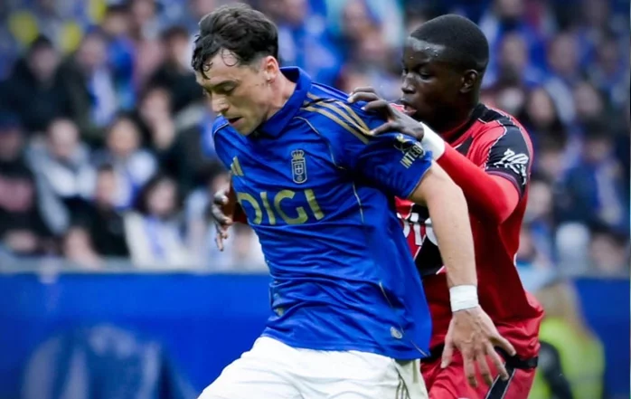 David Costas roba un balón a un jugador contrario pero no recupera el balón.