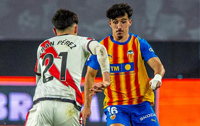 José Gayà roba un balón a un jugador contrario pero no recupera el balón.