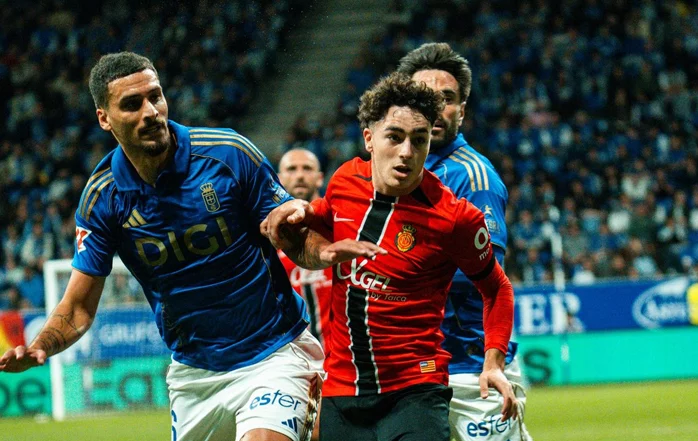 Omar Mascarell roba un balón a un jugador contrario pero no recupera el balón.