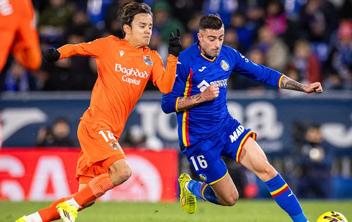 Centro preciso de Takefusa Kubo que encuentra un compañero.