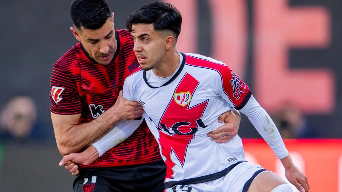 Gorka Guruzeta roba un balón a un jugador contrario pero no recupera el balón.