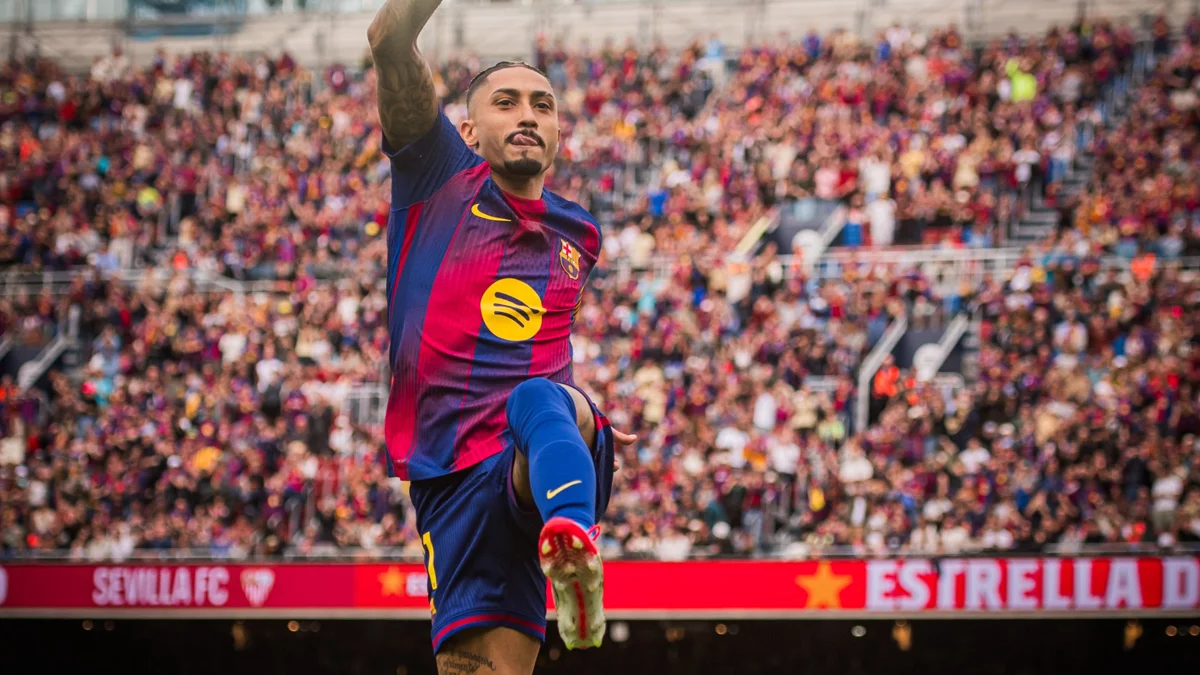 Raphinha cuelga el córner.