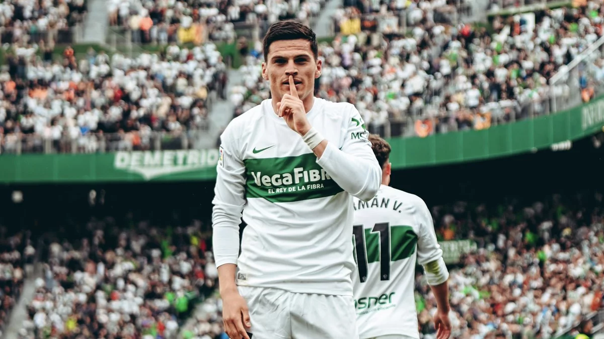 Aleix Febas roba un balón a un jugador contrario pero no recupera el balón.