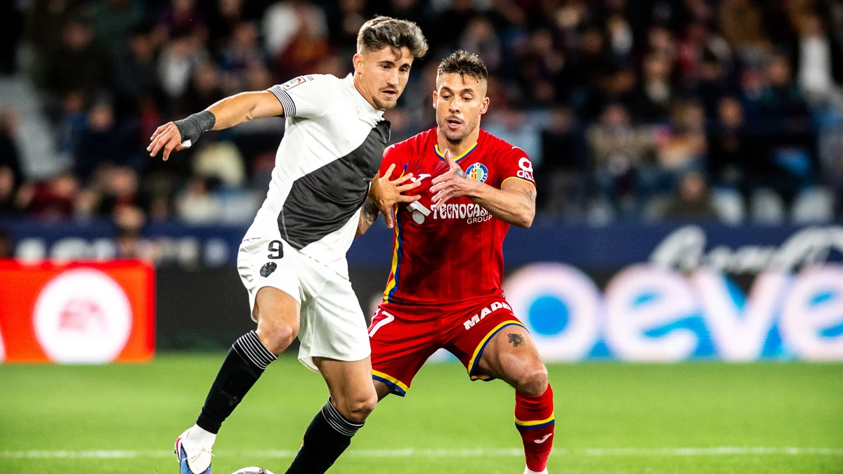 Mario Martín roba un balón a un jugador contrario pero no recupera el balón.