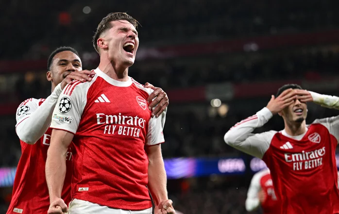 Declan Rice roba un balón a un jugador contrario pero no recupera el balón.