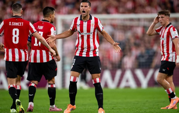 Yuri Berchiche roba un balón a un jugador contrario pero no recupera el balón.