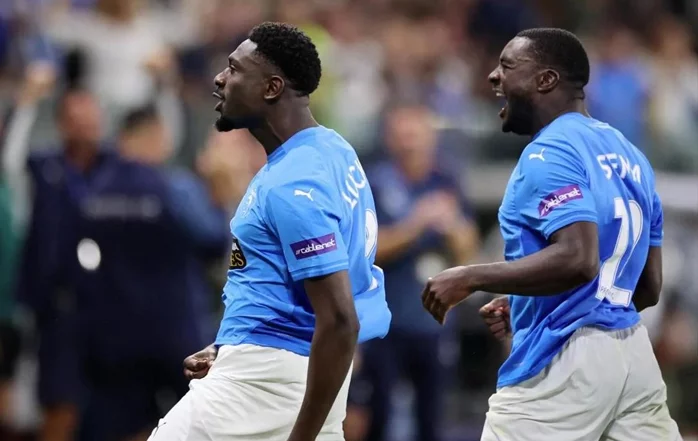 Manor Solomon roba un balón a un jugador contrario pero no recupera el balón.