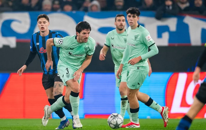 Jesús Areso roba un balón a un jugador contrario pero no recupera el balón.