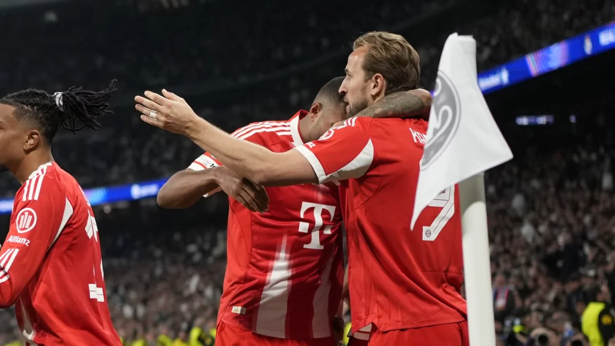 Tiro de Jamal Musiala que no encuentra portería.