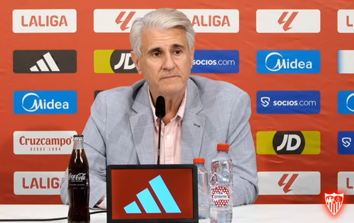 "Primero, buenas noches a todos, perdón por las horas, espero que después de la rueda de prensa podáis descansar, porque me imagino que habéis tenido un día muy duro de noticias y de actividad en todos los clubes, especialmente en el nuestro. Creo que el balance general de todo este verano es un poquito lo que comentábamos al principio, que todo se ha movido al final del mercado, prácticamente en las últimas semanas, que habíamos estado trabajando a lo largo de todo el verano para llegar en estos últimos momentos con las ideas muy claras que eran sobre todo hacer un equipo de fútbol, hacer un grupo, hacer un equipo, conseguir fortalecer nuestro equipo, nuestra identidad y fortalecer sobre todo los valores del club, con jugadores que nos aporten eso que entendíamos que era necesario, más allá de los nombres propios y balance muy positivo sobre todo por tener un staff técnico y un entrenador que considero que es muy importante, también lo considero un fichaje muy importante del Sevilla para nuestro club, que nos va a dar una identidad propia, o que nos está dando una identidad propia y que esperemos que a lo largo de todo el año, tanto jugadores como staff, como todos los trabajadores, consigamos los resultados que toda la afición quiere, que es ver a un equipo competitivo, un equipo que no tenga los problemas que tuvo el año pasado y que mejoremos día a día, cada día estaremos trabajando para mejorar y para dar las mayores alegrías posibles a nuestra afición."