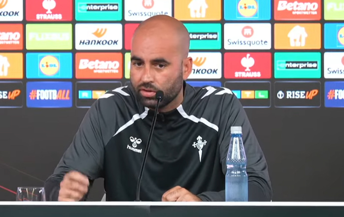 "La sensación de estar compitiendo en la Europa League es un día precioso, como cualquier día importante en la vida de una persona se acuerda de sus seres queridos, en este caso como decías de mi padre, de mi tío, que no lo pueden ver, y también de mi madre, de mi hermana, de mis hijas, de toda la gente que me gustaría que estuviese aquí mañana y que lo pudiesen disfrutar, pero creo que lo importante es que tengamos la sensación de poder disfrutar de lo que viene, de lo que estamos viviendo, de poder estar con 10 jugadores que ya entrenan en categorías inferiores viviendo esto, con 16 jugadores que han pasado por el Celta B, y sobre todo con un vestuario tan unido, tan bonito, tan emocional como el que tenemos, que seguro nos va a representar a todos los celtistas muy bien en esta competición y siguiendo la línea de lo que llevamos haciendo durante un año y medio."