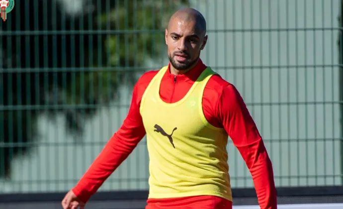 Amrabat se ejercita con el grupo con la selección de Marruecos
